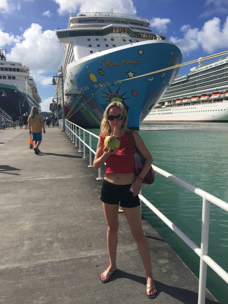 St. Thomas, my love! Third time on this island and it’s magic never ceases. We disembarked in Charlotte Amalie and like last time, took one of the local open buses to Magen’s Bay. The buses are safe, inexpensive and operated by incredibly friendly local drivers. We passed the lush hills and beautiful scenery this island has to offer and across the island to reach the beach. Entry fee was still $5.50 and once we were at the beach we realized that the guys working at the concessions stand whom we had made friends with last time were still there. We had some beers together and relaxed on the beach. It was a great day of enjoying the natural beauty of the bay, swimming in the crystal blue waters, watching the colorful fish and giant pelicans and drinking fresh coconut water. We took the same mode of transportation back to the ship
