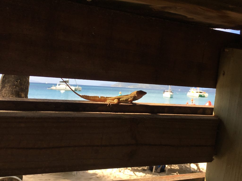 We had been to Tortola once before but at that time left the island straight away to go visit the Baths in Virgin Gorda, BVI. So this time, we wanted to explore what was right around us and took a taxi to Cane Garden Bay. The ride included navigating some roller coaster hills and hairpin bends and eventually led us to one of Tortola’s nicest beaches with fine white sands, plenty of sheltering palm trees and gentle surf. Considering that this is an intimate bay, that the beach was not that long and that a massive cruise ship was in town I was surprised that it did not feel more crowded. There were several places to eat and bars right along the beach - an extra nice setting to have some fresh fish and drinks. Afterwards we took a walk along the powdery white-brown sand and swam in the sea. It being a bay means there are hardly any waves and you can walk quite far in the sea.
