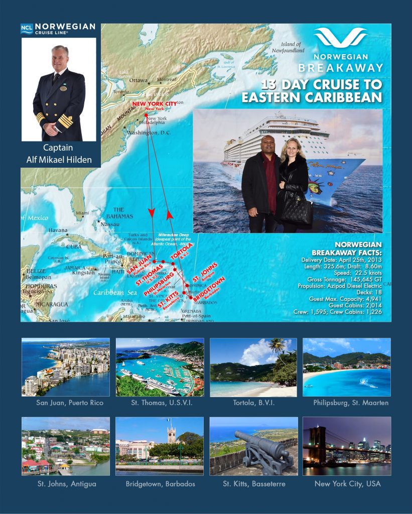 We departed from New York City on January 02, 2017 on the Norwegian Breakaway from the Manhattan Cruise Terminal, heading to the Caribbean.