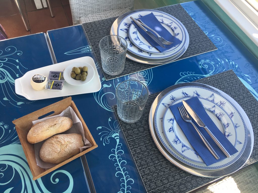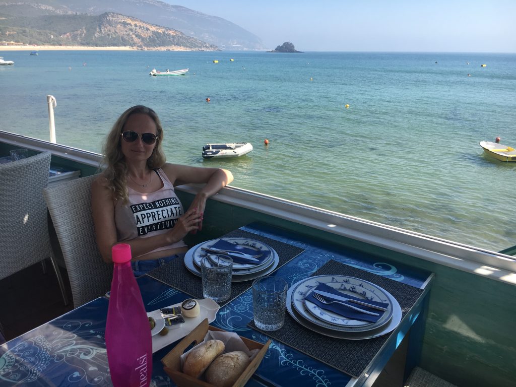 The next morning we got up early and rented a car near the cruise ship at the Santa Apolónia train station. We drove across the magnificent Vasco da Gama Bridge (the longest in Europe) and through lovely Portuguese countryside and continued for about an hour until we reached Portinho de Arrábida, a gorgeous seaside area with incredible beaches and clear turquoise waters. We stepped into a little seafood restaurant right on the water and sat on the veranda overlooking the ocean and tons of happy fish swimming underneath us. We shared a sea bass - the best we had ever eaten at a restaurant. After the extended lunch we only had enough time to dip our feet into the warm and crystal clear ocean before driving back to Lisbon, returning the car and heading back onboard. We cruised out of the city with perfectly blue skies and a huge group of sea gulls escorting is out of the harbor.